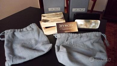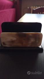 set da scrivania in purissimo corno. BYRON. porta documenti misura cm. 17x15. porta graffette o altro cm. 12.5x10. completo di certificato, custodie e scatole. nuovo mai utilizzato. può essere un bel regalo per festa del papà che lavora in ufficio. VEDI FOTO