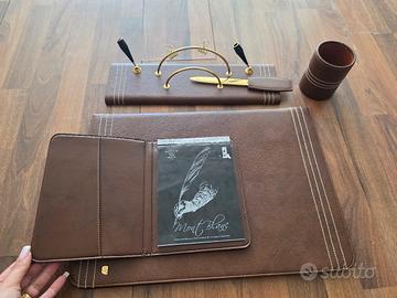Elegante e raffinato set da scrivania Munari in pelle marrone. Un accessorio ideale per arredare uno studio o un ufficio in stile classico, vintage o professionale. Dentro al portapenne ci sono segni di usura (come da foto)