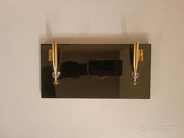 - Base in legno, finitura nero lucido; elementi portapenne composti da ottone placcato oro e cristalli al piombo
