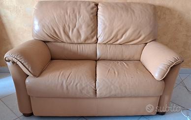Due divani da due sedute ampie (no divani letto) + poltrona di pelle colore chiaro. Marca Divani & divani