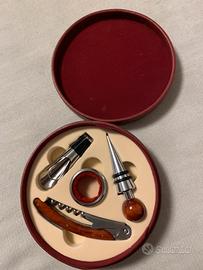 Set da sommelier per vino, in un'elegante custodia circolare in pelle.