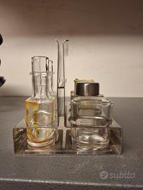 Nuovo set Alessi Vintage per olio, aceto, sale, pepe e stuzzicadenti in acciaio inox 18/10 e cristallo, made in Italy anni '70