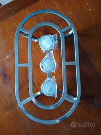 Senza marca: Scaldavivande da portare in tavola in metallo argentato, tiene calde le vivande con tre candeline comprese. misure altezza 4,5 larghezza 18 lunghezza 34 circa. Nuovo mai usato, senza confezione originale.
