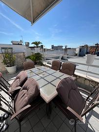 Vendo set da esterno composto da: •Tavolo con piano in vetro temperato •6 sedie con struttura in ferro e cuscini imbottiti Ideale per terrazzo, balcone o giardino. ✔️ Condizioni: buone ✔️ Struttura solida e resistente ✔️ Comodo per pranzi/cene fino a 6 persone 📍 Ritiro a mano (zona afragola)