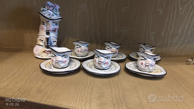 Vendesi raro set da tè/caffè in ceramica artigianale dal design antropomorfo e surrealista. Pezzi unici interamente fatti e dipinti a mano.