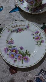Set da thè vintage porcellana inglese Royal Albert flower of the month series September Tazzina con piattino + piatto dolci