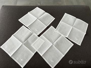 Con quattro tovaglioli ricamati con un fiore margherita su un angolo con bordo bucherellato