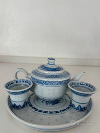 Set da tè in porcellana bianca con decorazioni blu. Perfetto per gli amanti del tè e di torni (sake caldo - tè gong fu - cerimonia del tè )