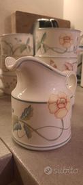 set da the Villeriy & Boch composto da teiera, 7 piattini e 6 tazze piccole, 4 piattini più grandi, 1 tazza grossa, due zucchieriere di cui una con coperchio, 1 brocca piccola per il latte