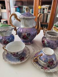 Set da the con teiera , zucchieriera, porta latte e due tazze e due piattini.