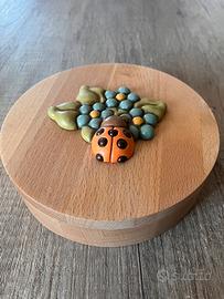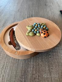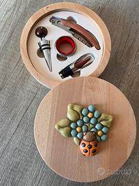 Set da Vino della THUN in Cofanetto di Legno con Coccinella Portafortuna! Bellissimo e mai usato Set da Vino della THUN, perfetto per gli amanti del vino e dei pezzi da collezione. Ottima idea regalo o per arricchire la vostra cucina/taverna! Il set è contenuto in un'elegante scatola rotonda in legno chiaro, con coperchio decorato da una graziosa applicazione in ceramica THUN che raffigura una Coccinella arancione (simbolo di buon auspicio) e un mazzetto di fiori in rilievo. Contenuto del set: * 1 Cavatappi multifunzione (tipo sommelier) con manico in legno. * 1 Tappo in acciaio/gomma per bottiglie con decoro sferico marrone. * 1 Versatore/Aeratore in metallo con inserto in legno. * 1 Anello salvagoccia con feltro interno rosso. Condizioni: Nuovo, mai usato e tenuto nella sua confezione originale. Perfetto come in foto! Misure: diametro scatola 17 cm, altezza scatola 4 cm. #Thun #SetVinoThun #CoccinellaThun #IdeeRegalo #AccessoriVino #Portafortuna #CountryThun #CofanettoLegno #RegaloCompleanno #ArticoliDaCucina