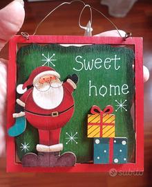 -Quadretto da appendere in legno con Babbo Natale in rilievo 11x11 cm (nuovo con cartellino)