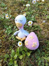 Set composto da due decorazioni per la Pasqua composto da una paperella e un ovetto ricamato a mano.