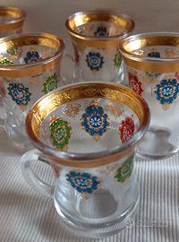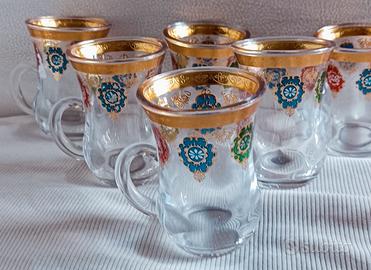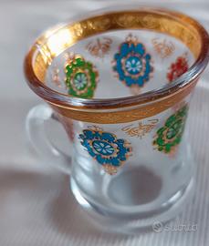 Servizio da caffè 6 tazzine vintage da collezione in vetro dorato,Turchia.