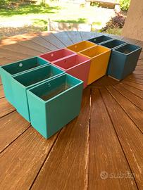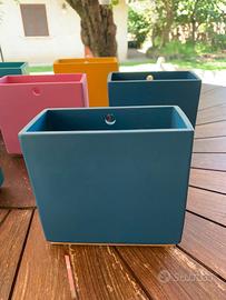 Vendo set completo di 10 vasi da parete per piante da interno, dal design moderno e minimalista. Realizzati in resina di alta qualità con base in vero legno di faggio, ideali per arredare casa con stile.