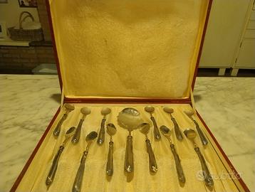 Set di 12 cucchiaini da gelato con cucchiaio da portata, in argento 800, nella custodia originale, vendo ad € 80