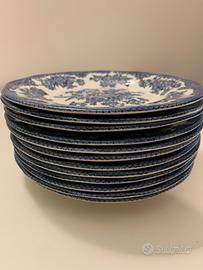 Vendo set completo di 12 piatti da dolce in ceramica della prestigiosa Enoch Wedgwood (Tunstall) Ltd., decorati con il famoso motivo “Asiatic Pheasants” in blu. Diametro: 20 cm Parte superiore perfetta, senza scheggiature, crepe o sbeccature. Sul retro si notano alcune sottili screpolature della vetrina (craquelure) e piccoli puntini in rilievo, tipici difetti di fabbricazione della ceramica d’epoca. Non compromettono né l’estetica né l’utilizzo. Perfetti per collezionisti o per dare un tocco elegante alla tavola. Produzione: metà del XX secolo, marchio Enoch Wedgwood Tunstall Ltd. Realizzata tra gli anni ’60 e ’70 del Novecento. Un servizio che unisce la tradizione ceramica di Staffordshire al fascino intramontabile del celebre motivo ‘Asiatic Pheasants’. Un set autentico, elegante e ricercato, ideale per collezionisti o per dare alla tavola un tocco di storia inglese. Un pezzo di storia della ceramica inglese, ideale come regalo o per completare il servizio da tavola. Prezzo 300 € per l’intero set di 12 piatti