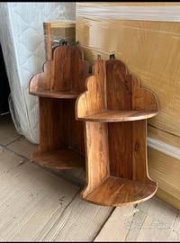 Splendida mensola angolare in legno massello, dallo stile rustico e rustico.