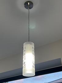2 lampade sospensione in vetro trasparente e vetro bianco con appendino in acciaio Una plafoniera grande quadrata in vetro colore bianco, bordo’ e grigio