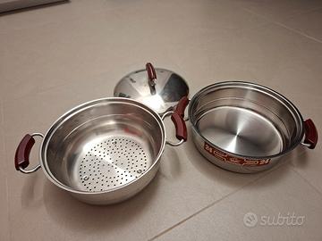 Set di 5 pezzi, tutti di diametro 24 cm e impilabili uno sull'altro, in acciaio inox 18/10 Marca italiana SAF Italy, composto da: