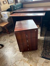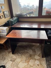 Scrivanie in legno da ufficio. Scrivania grande 200 cm x 90 cm, alta 76 cm. Scrivania piccola 110 cm x 52 cm, alta 72 cm. Cassettiera 43 cm x 52 cm, alta 64 cm. Solo ritiro a mano.