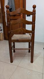 set di 2 sedie di legno con seduta in paglia