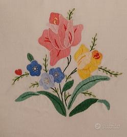 🌸 Vendo bellissimo set di 3 asciugamani in lino con inserti in cotone e decorazioni floreali ricamate a mano, perfetti per chi ama l’artigianato e lo stile senza tempo.