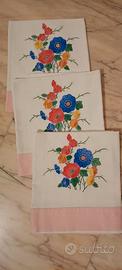 Vendo bellissimo set di 3 asciugamani in lino con inserti in cotone e decorazioni floreali ricamate a mano, perfetti per chi ama l’artigianato e lo stile senza tempo.