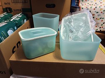 Set di 3 contenitori ermetici per alimenti. - Realizzati in plastica resistente. - Design moderno e funzionale.
