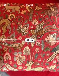 Set di 3 cuscini. Due quadrati e uno rettangolare più grande. I due più piccoli hanno il cerniere, il grande no. Misure approssimative: 32x32cm (i due quadrati) 35x52cm (quello rettangolare). In ottime condizioni