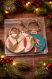 🎄 Set di 3 decorazioni natalizie artigianali in stile giapponese Un piccolo incontro tra tradizione e poesia. Questo set di 3 sfere natalizie è realizzato interamente a mano con tecnica decoupage su legno, utilizzando carta da origami giapponese tradizionale dai motivi tradizionali. Ogni decorazione racconta una storia: ✨ un colibrì leggero e armonioso ✨ un motivo geometrico floreale simbolo di equilibrio ✨ un drago giapponese, potente e protettivo Le sfere sono: realizzate su base in legno piatto da 7,5 cm. decorate su entrambi i lati rifinite con cordino naturale in juta confezionate in scatolina trasparente, perfetta anche come idea regalo 🎁 Ideali per: decorare l’albero di Natale in modo originale piccoli regali artigianali unici chi ama lo stile giapponese e le cose fatte con cura. 💫 Porta nel tuo Natale un dettaglio diverso, delicato e pieno di significato.