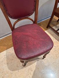 3 sedie vintage con ecopelle rossa, gambe in legno. Anni '50/60, usate ma tenute molto bene. Ideali per casa. Ritiro Mantova a spese dell'acquirente.