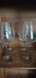 4 calici in vetro dal design moderno ideali per degustare vini rossi.