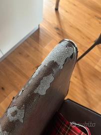 4 sedie con telaio metallico imbottite e rivestite di finta pelle. Il telaio è molto stabile ed in ottimo stato, lo strato esteriore è danneggiato superficialmente come da fotografie Prezzo per tutte e 4