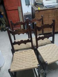 Set di 4 sedie in legno impagliate