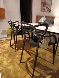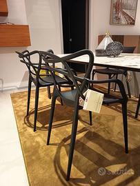 La sedia Masters rappresenta un omaggio creativo e contemporaneo a tre leggendari modelli iconici, reinterpretati dal talento di Philippe Starck. La fusione della “Serie 7” di Arne Jacobsen, della “Tulip Armchair” di Eero Saarinen e della “Eiffel Chair” di Charles Eames dà vita a una forma unica e affascinante, in cui le silhouette classiche si intrecciano armoniosamente. Leggera e versatile, la sedia Masters è perfetta per ogni ambiente, e grazie al suo design resistente, può essere utilizzata anche all’esterno.