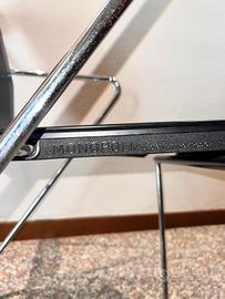 Acciaio cromato e lamiera di metallo verniciato.