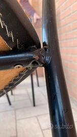 Vendo set di 4 sedie in metallo, colore nero. Una delle sedie ha un piccolo punto da saldare nella struttura (riparazione semplice). Le altre sono in ottime condizioni, stabili e comode.
