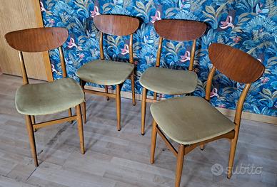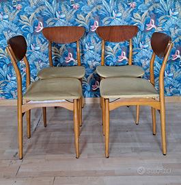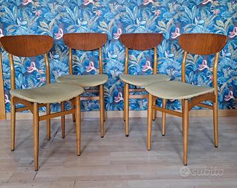 Set di 4 sedie stile danese anni 60 in teak. Ottime condizioni strutturali con piccoli segni del tempo, tappezzeria da rifare. Possibilità di consegna a carico dell'acquirente. Seguiteci sulla nostra pagina Instagram allavecchiamaniera/andrea.piotti80
