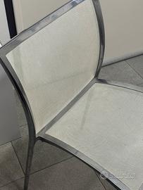 Set di 4 sedie modello Zilli air di Zanotta made in italy originali acquistate nel 2005 Designate da Roberto Barbieri nel 2002 Struttura in alluminio pressofuso e lucidate a mano per questo la sua imperfezione e la sua caratteristica principale Seduta e schienale in tela pvc bianca Utilizzabili sia indoor che outdoor Ottime condizioni