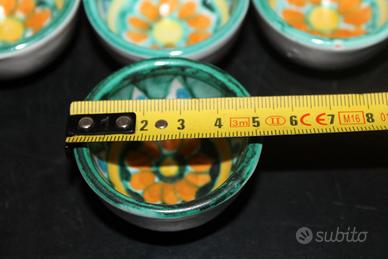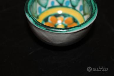 Eleganti e vivaci, queste ciotoline sono un autentico esempio della tradizione ceramica di Vietri sul Mare, rinomata per le sue decorazioni colorate e uniche. Ogni pezzo è realizzato e dipinto a mano, rendendo ogni ciotolina leggermente diversa e quindi unica.