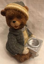 Set di 5 orsetti lettori portacandela natalizi, tutti diversi, ben lavorati e particolari. Altezza 12cm/cad. circa. Ottime condizioni come da foto.