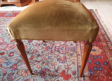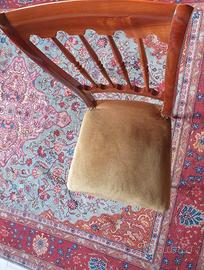 Vendo elegante set di 5 sedie in legno dal design classico e raffinato. Un arredo perfetto e comodo per completare un tavolo da pranzo in stile tradizionale o per dare un tocco vintage al salone. Caratteristiche (per singola sedia): Struttura: Realizzate in solido legno lucido (tonalità calda). Gli schienali sono finemente lavorati con colonnine tornite, mentre le gambe anteriori presentano eleganti scanalature decorative. Seduta: Ampie e confortevoli, sono morbidamente imbottite e rivestite in tessuto tipo velluto color senape/oro antico. Il perimetro delle sedute è impreziosito da classiche borchie metalliche. Le sedie sono in ottime condizioni generali. Strutturalmente sono robuste, solide e stabili. Il legno è ben tenuto e lucido. Il tessuto delle sedute è integro, senza strappi o macchie evidenti, presentando solo i lievi e normali segni del tempo tipici dei mobili vintage. Vendo preferibilmente il set completo da 5. Solo ritiro a mano a Torino (zona Santa Rita). Visto l'ingombro, non effettuo spedizioni. Disponibile per altre foto o per visionarle di persona. Prezzo trattabile.