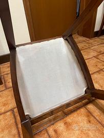 Vendo 5 sedie vintage in legno massello con intarsi, seduta e schienale in tessuto.