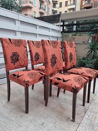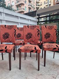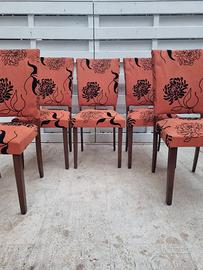 Set di 5 sedie motivo floreale su fondo corallo