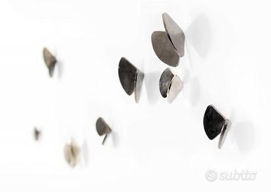 Le farfalle stilizzate possono essere fissate liberamente a parete, offrendo massima libertà compositiva e trasformando ogni muro in un’opera d’arte funzionale.