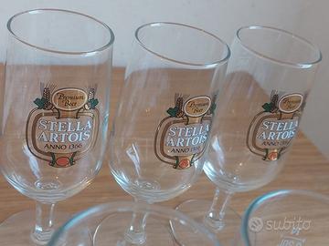 Set di 6 bicchieri/calici da birra Stella Artois, in vetro con base a stelo, capacità 0,2 cl (200 ml). Modello vintage, con logo classico stampato sul fronte. Presentano piccoli segni di usura dovuti al passare del tempo, ma sono comunque in buone condizioni generali, come visibile in foto. Uno dei bicchieri ha una lieve sbeccatura alla base, che non ne compromette l’utilizzo (vedi foto). Ideali per uso quotidiano o per chi apprezza il marchio.