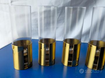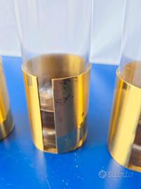 Set di 6 Bicchieri Vintage in Cristallo e Ottone