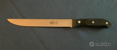 Acciaio inox, lavorati a mano; manico applicato sulla lunghezza della lama.