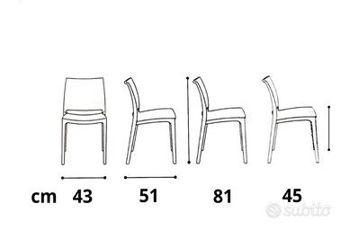 Realizzate interamente in polipropilene, resistenti e facili da pulire, ideali per sala da pranzo, cucina o terrazzo.